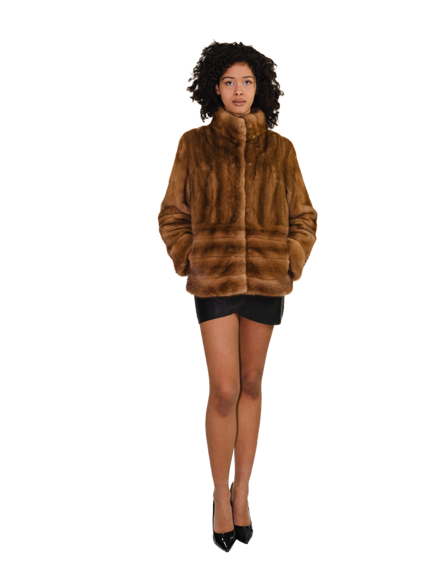 Home » Shop » Giacca visone gold oro 44 orizzontale maniche e fondo verticale collo pistagna pelliccia