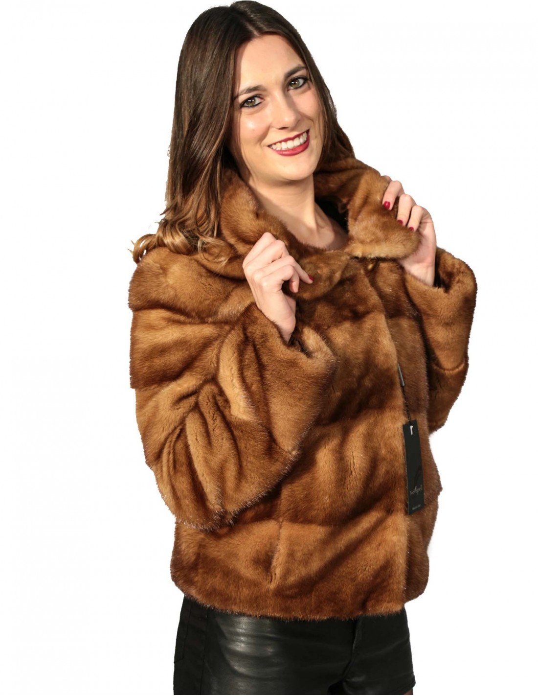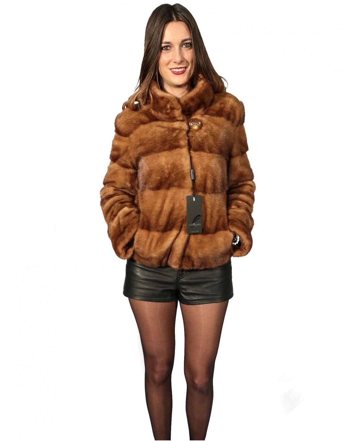 42 pelliccia donna blouson visone golden con lavorazione orizzontale con collo pistagna