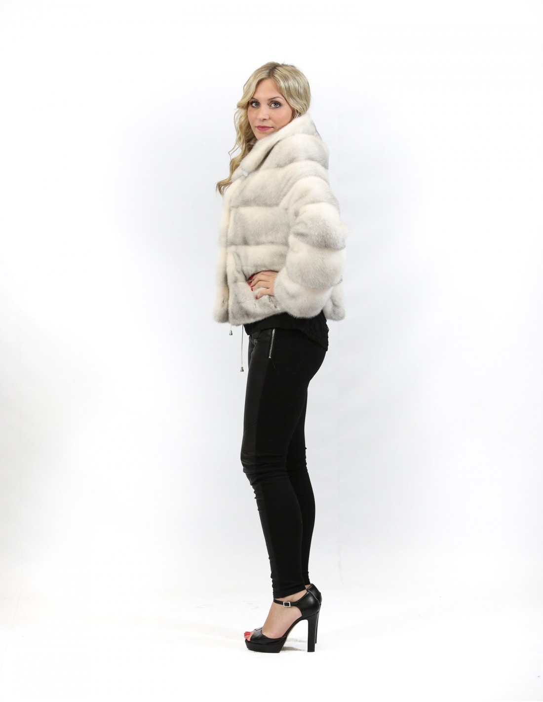 Pelliccia giacca visone zaffiro cross brinato orizzontale braschi con culisse e tasche