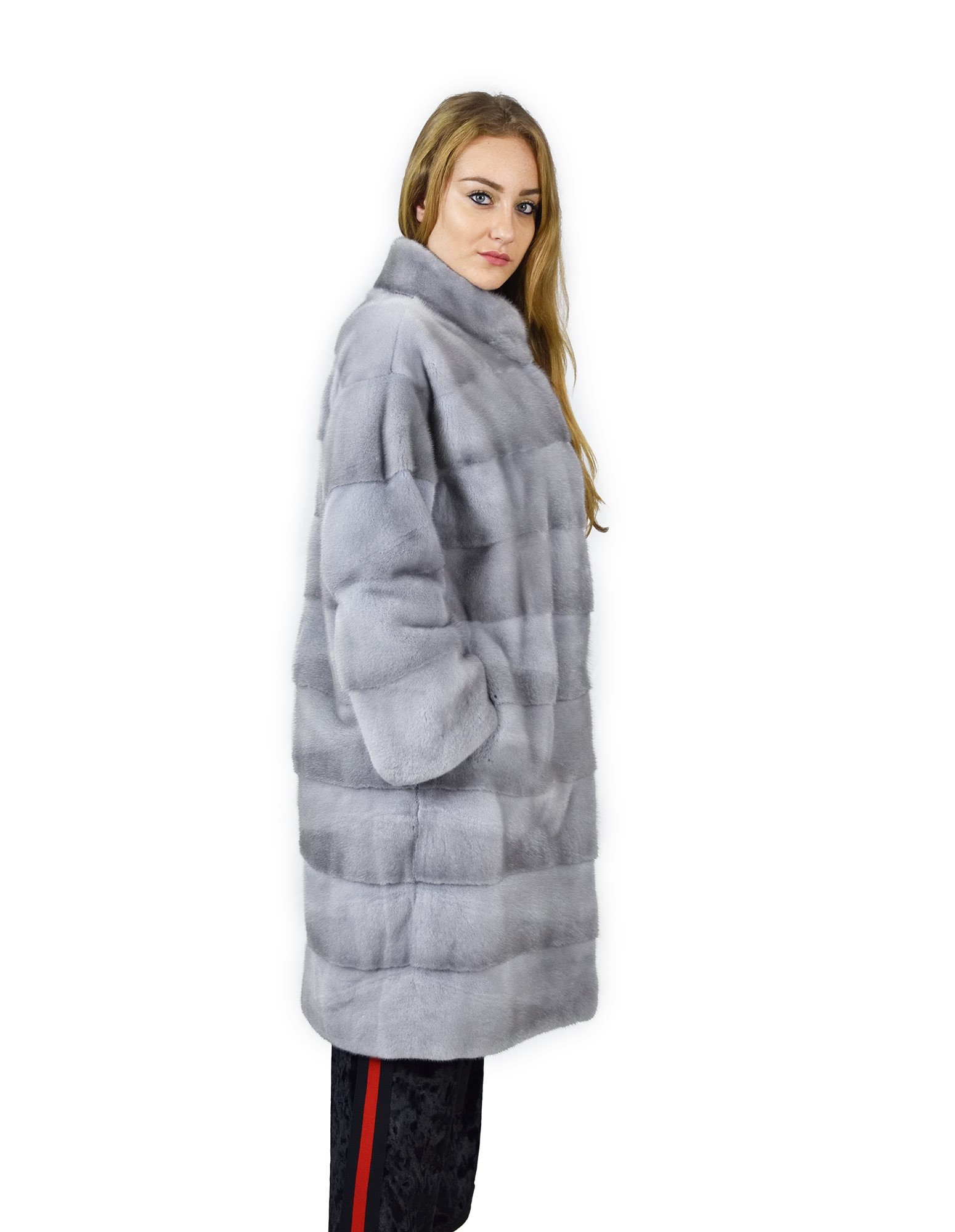 46 Пальто 102 см из горизонтальной норки сапфировый корейский воротник fourrure de vison норковый мех Nerz
