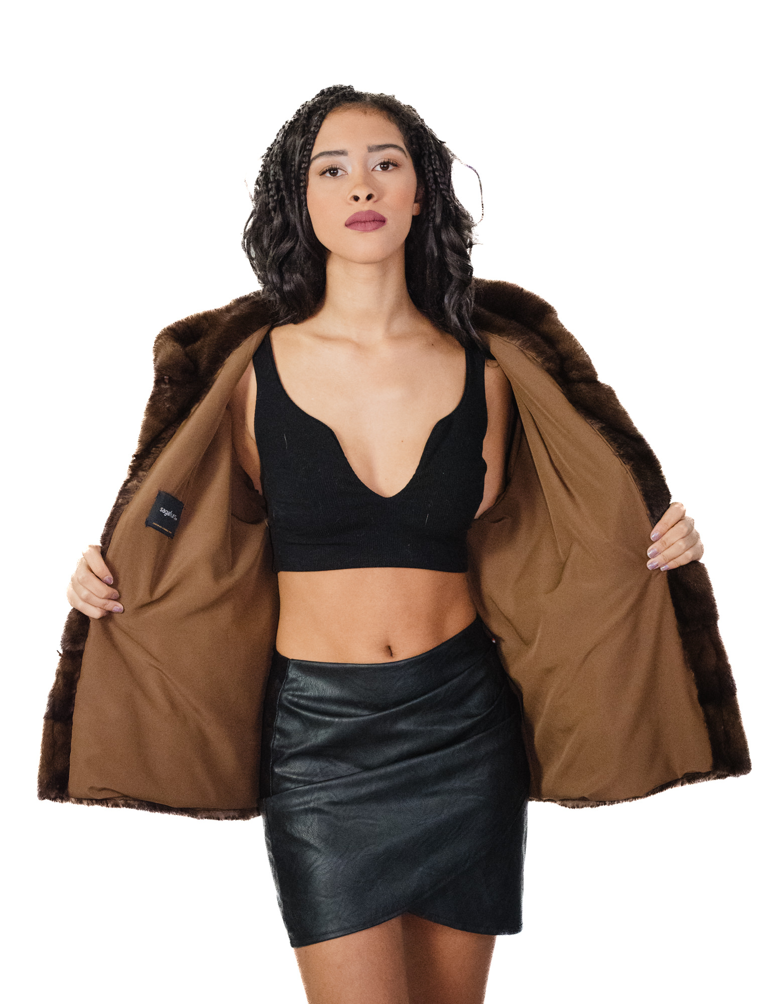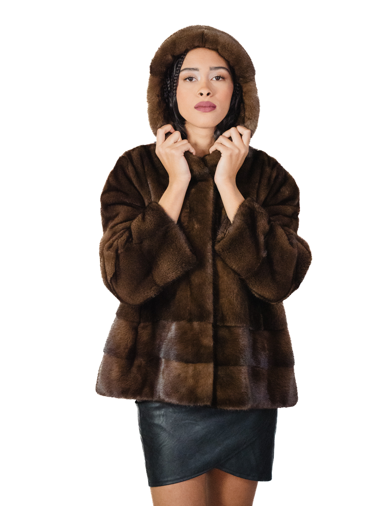 Cappotto saga furs pelliccia visone demi 50 orizzontale fondo e polsi e pelle intera cappuccio