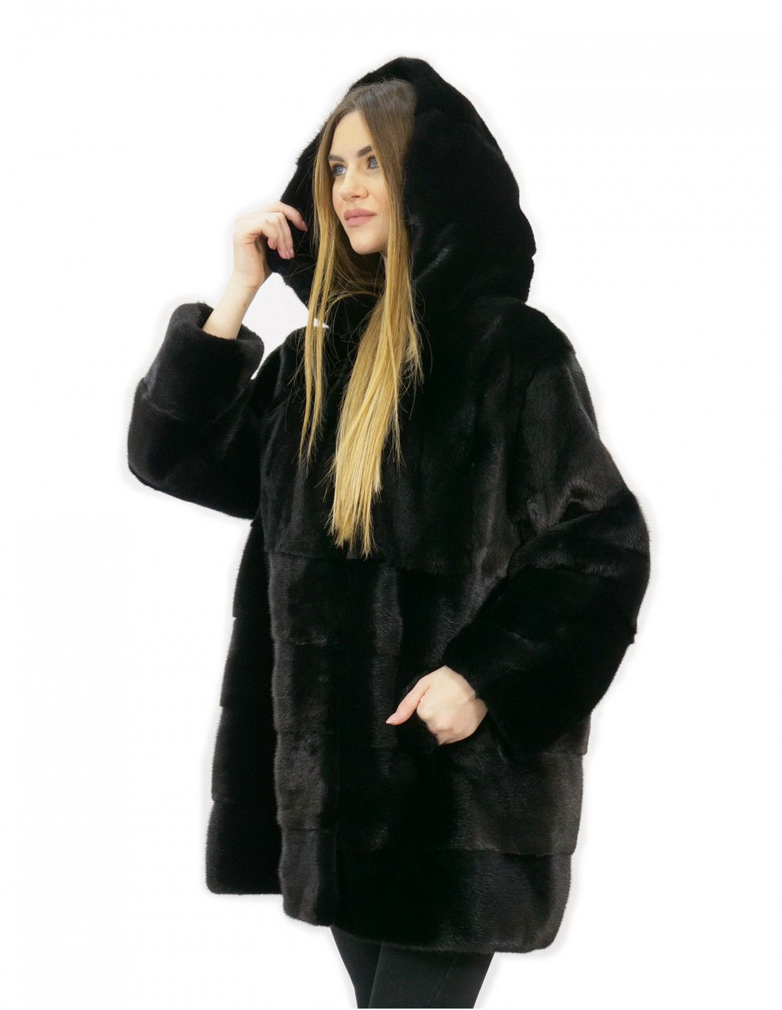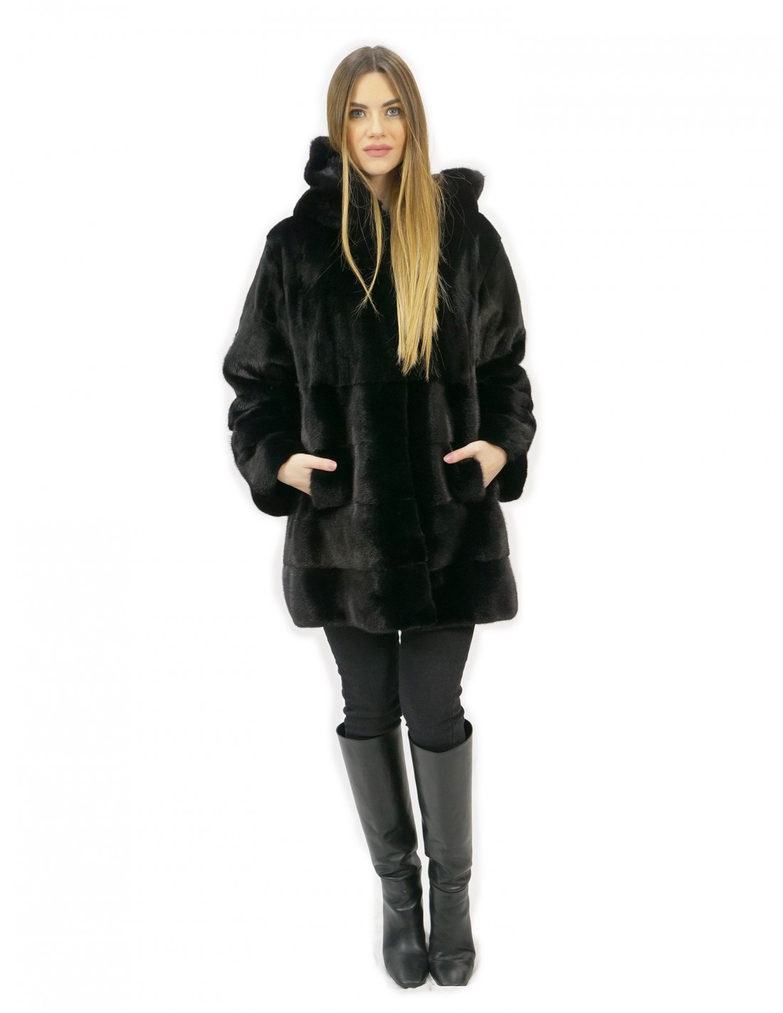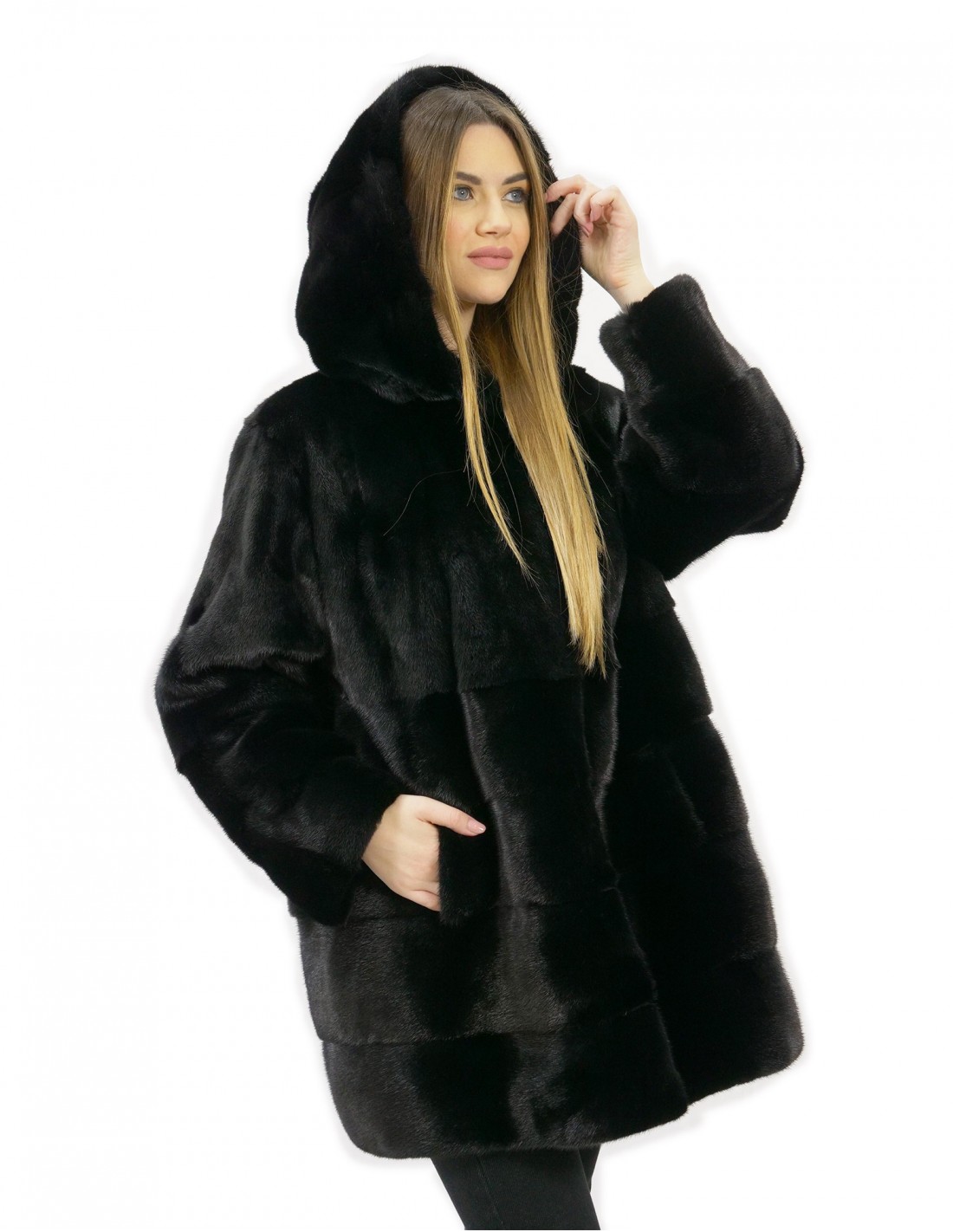 Горизонтальная куртка из цельной норки. Наши норковые меха производятся в наших лабораториях, поэтому это уникальные и эксклюзивные норковые жакеты. Возможность производства наших мехов высочайшего качества позволяет нам делать предложения по разным ценам, при этом всегда доступны различные возможности по низким ценам. Кроме того, наши лаборатории и наше сотрудничество гарантируют мех норки бесспорного качества, 100% произведенный в Италии. Для этого использован мех женской норки — шуба из норки со шкурками с подписью «Копенгагенский мех». Норковая шуба имеет двойную горизонтальную обработку по низу и на запястьях и выполнена из цельной кожи великолепного черного цвета, с красивым капюшоном, полностью обшитым цельными шкурами норки, а также внутри, застежкой на крючки, длинными рукавами и внешними карманами.