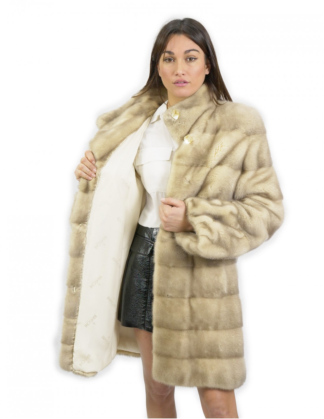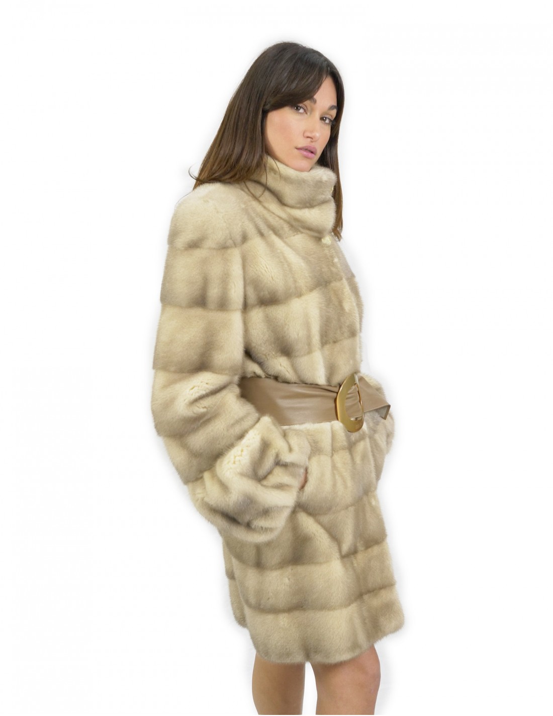 Шуба из норки цельнокроеная в горизонтальной обработке. Наши шубы из норки производятся в наших мастерских, поэтому это уникальная и эксклюзивная норковая шуба. Возможность производить наши меха высочайшего качества позволяет нам делать предложения по разным ценам для разных случаев и всегда по низким ценам. Кроме того, наши лаборатории и наше сотрудничество гарантируют бесспорное качество норкового меха 100% итальянского производства. Качество женского меха норки, использованного для этого, — это норковая шуба в фирменных шкурах Braschi. Шуба из норки представлена в горизонтальной обработке с внешними карманами, с застежкой на крючок и воротником-пистань, из норки, с длинными рукавами, в цвете luppon sun с внешним кожаным ремнем, всегда подписанным брендом Braschi.